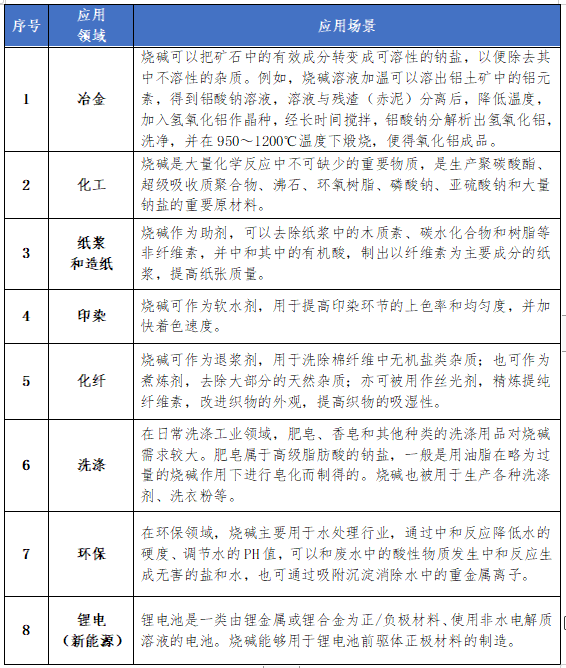 表1 燒堿應(yīng)用領(lǐng)域及場景