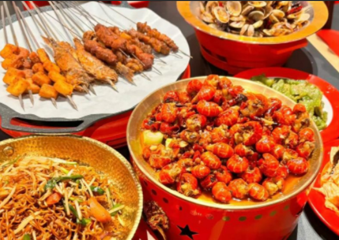 當(dāng)時,和朋友約在離鄭商所不遠的鄭喜旺燒烤吃飯。等人差不多到齊,我們研究起菜單,輪流點菜。我上一次這么認(rèn)真地在方格里打鉤,要追溯到十幾年前的高考了。不得不說,雖然新疆燒烤歷史悠久,但多數(shù)新疆燒烤店的菜品過于單一,幾乎就是羊肉和羊內(nèi)臟,一般不會超過10個單品。而內(nèi)地的燒烤店,菜品豐富,豬、牛、羊、雞、海鮮、蔬菜,應(yīng)有盡有,選擇的空間很大。點完菜,朋友介紹說,鄭喜旺燒烤發(fā)源于新密市,由于去當(dāng)?shù)爻詿镜娜颂?,以至于?dāng)?shù)馗咚俾房诮?jīng)常堵車。不一會兒,烤羊肉、烤五花肉、烤牛肉、烤雞翅、烤金針菇、烤茄子陸續(xù)上桌,當(dāng)然還有店家招牌的秘制龍蝦。吃燒烤的好處在于,你不必等菜上齊,而是上一輪串就可以開擼,不夠還可以再加,沒有那么多規(guī)矩,環(huán)境非常輕松。吃了幾串,不得不說味道的確很贊。這家燒烤店的調(diào)料種類很多,吃起來比新疆燒烤更有層次,味道沒有那么重,可以說各具特色。