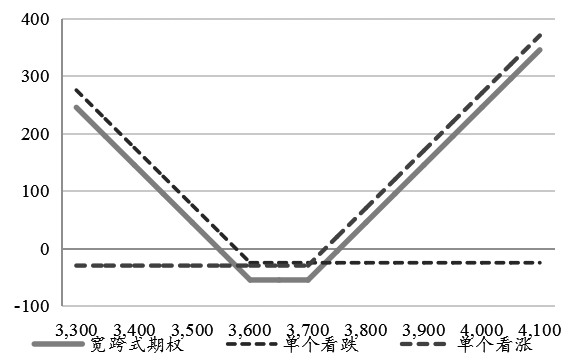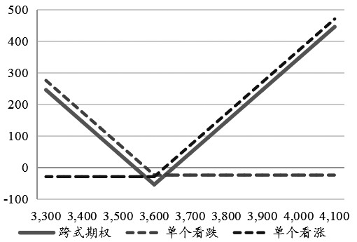 圖為同執(zhí)行價期權(quán)雙買組合收益曲線