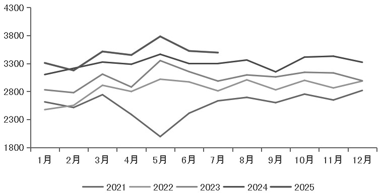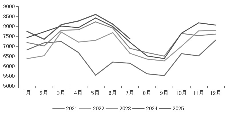 圖為印度柴油消費的季節(jié)性(單位:千噸)