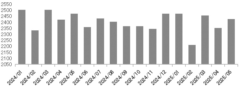 圖為印度國內(nèi)月度原油產(chǎn)量情況(單位:千噸)
