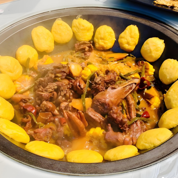這般酣暢時(shí)刻本該就著米飯大快朵頤,卻被友人攔下——原來鐵鍋燉的經(jīng)典搭檔是現(xiàn)貼的玉米餅。只見服務(wù)員熟練地沿鍋邊貼上金黃面餅,須臾間便烤得焦香酥脆,掰一塊蘸著湯汁,甜咸交織的幸福直擊味蕾。