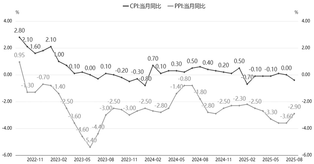 國家統(tǒng)計局最新公布的通脹數(shù)據(jù)顯示,8月CPI環(huán)比持平,同比下降0.4%;8月PPI環(huán)比由上月下降0.2%轉為持平,同比下降2.9%,降幅比上月收窄0.7個百分點。通脹整體表現(xiàn)仍較弱,這主要是受內需偏弱的影響,PPI降幅縮窄主要受“反內卷”預期支撐。從推動“消費增長—企業(yè)營收利潤增長—企業(yè)擴招和漲薪—居民可支配收入上升—居民消費意愿上升”的經濟正循環(huán)的角度來看,未來政策面可能著重發(fā)力打通消費鏈條的堵點,因此后市的政策利好預期仍較強。