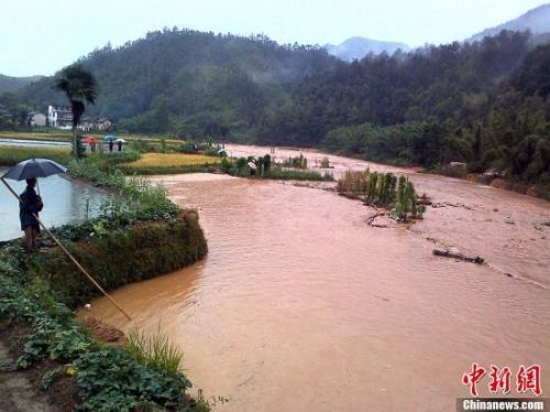 7月14日,江西省贛州市興國縣均村鄉(xiāng)遭遇洪澇災害,當?shù)剞r(nóng)田被淹,房屋進水,道路受阻。當日,超強臺風“蘇力”凌晨4時從福建移入江西,受“蘇力”影響,江西贛州市和吉安市東部、撫州市西部等地出現(xiàn)暴雨,其中贛南部分縣市境內降水已達到100毫米以上降水且降雨將持續(xù)。中新社發(fā)鐘欣攝