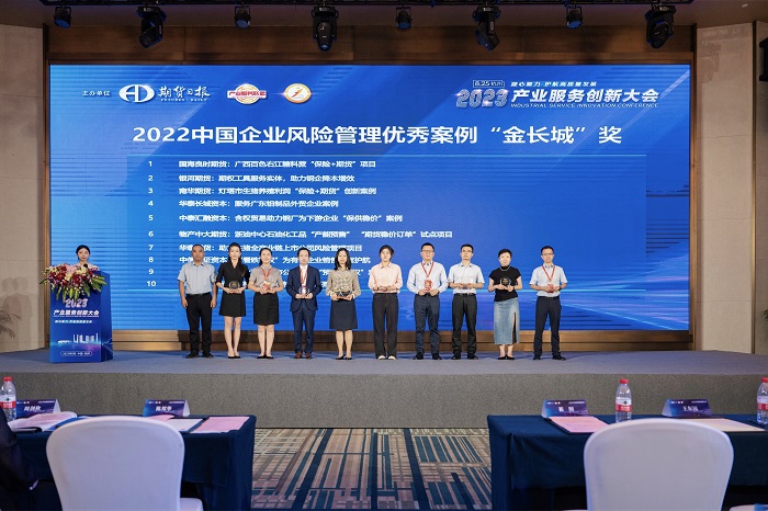 8月25日,在杭州舉辦的“2023產業(yè)服務創(chuàng)新大會暨首屆產業(yè)發(fā)展專家研討會”上,期貨日報對“產業(yè)服務杰出貢獻獎”“2022中國企業(yè)風險管理優(yōu)秀案例‘金長城’”獎、“2022中國企業(yè)風險管理‘金長城’”優(yōu)秀服務商獎等獎項進行了表彰。